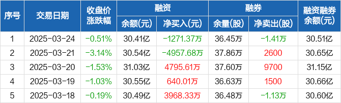 恒生电子:融资净偿还1271.37万元,融资余额30.41亿元(03-24)