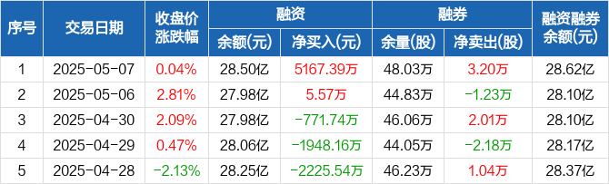 恒生电子:融资净买入5167.39万元,融资余额28.5亿元(05-07)