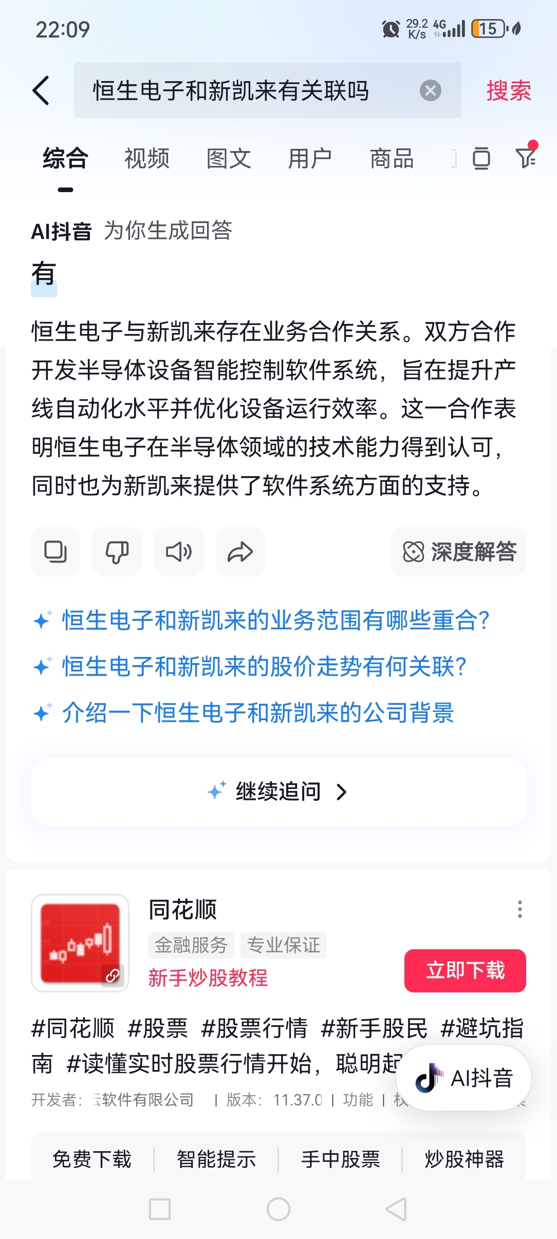 抖音能搜到。但是真假是真不知道,而且抖音上视频都没有恒生电子信息。