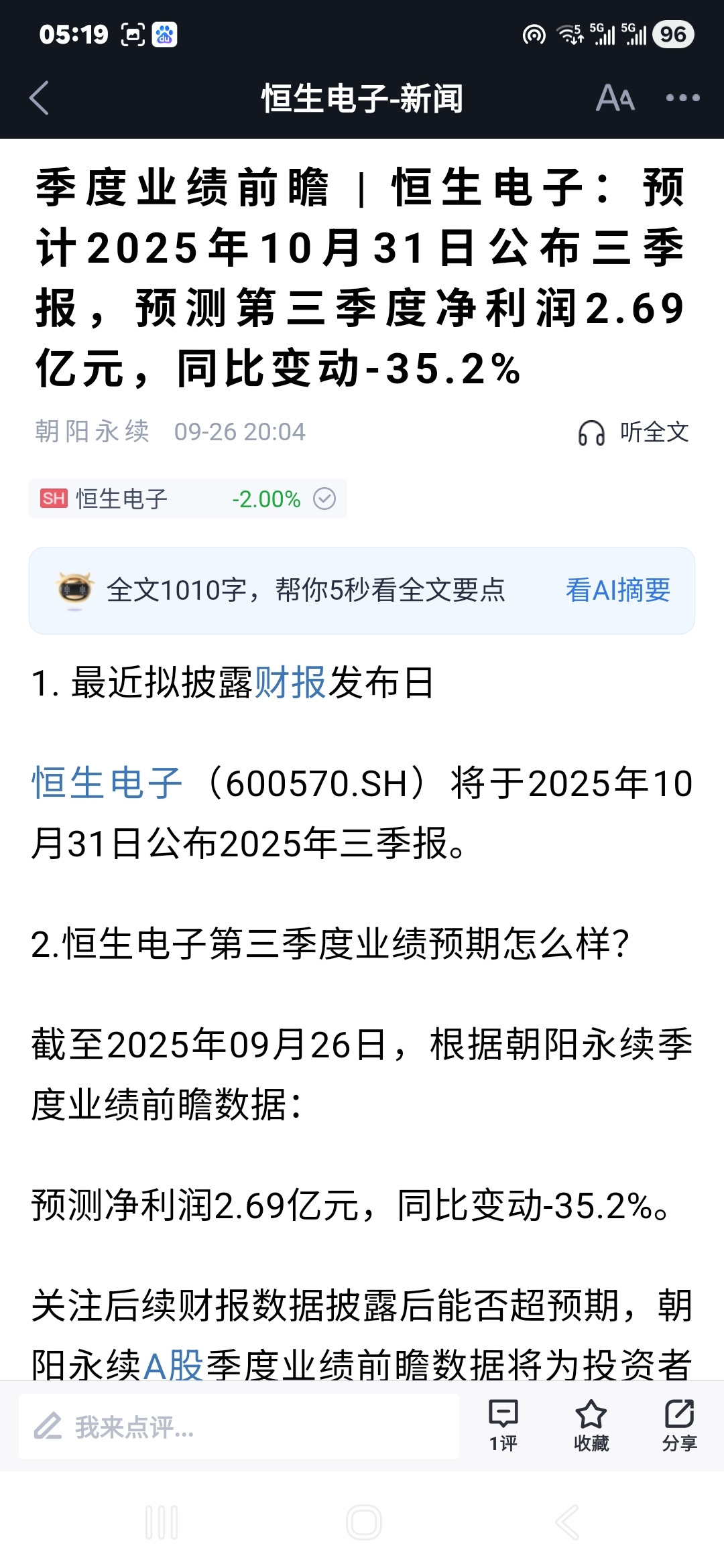 $恒生电子(SH600570)$ 2023年三季报净利是2.16亿,2024三季报净利是643.88万,2025预测是2.69亿,
