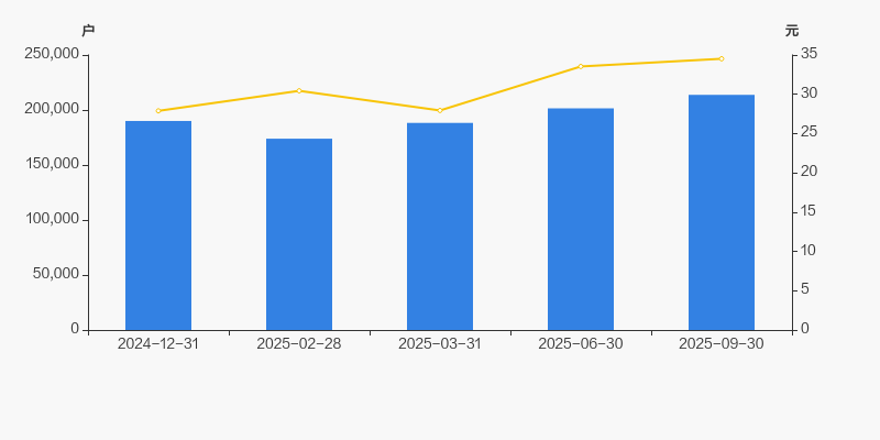 自2025年2月28日以来,公司股东户数连续3期上涨,截至目前增幅为22.92%。2025年2月28日至2025年9月30日区间股价上涨13.41%。
