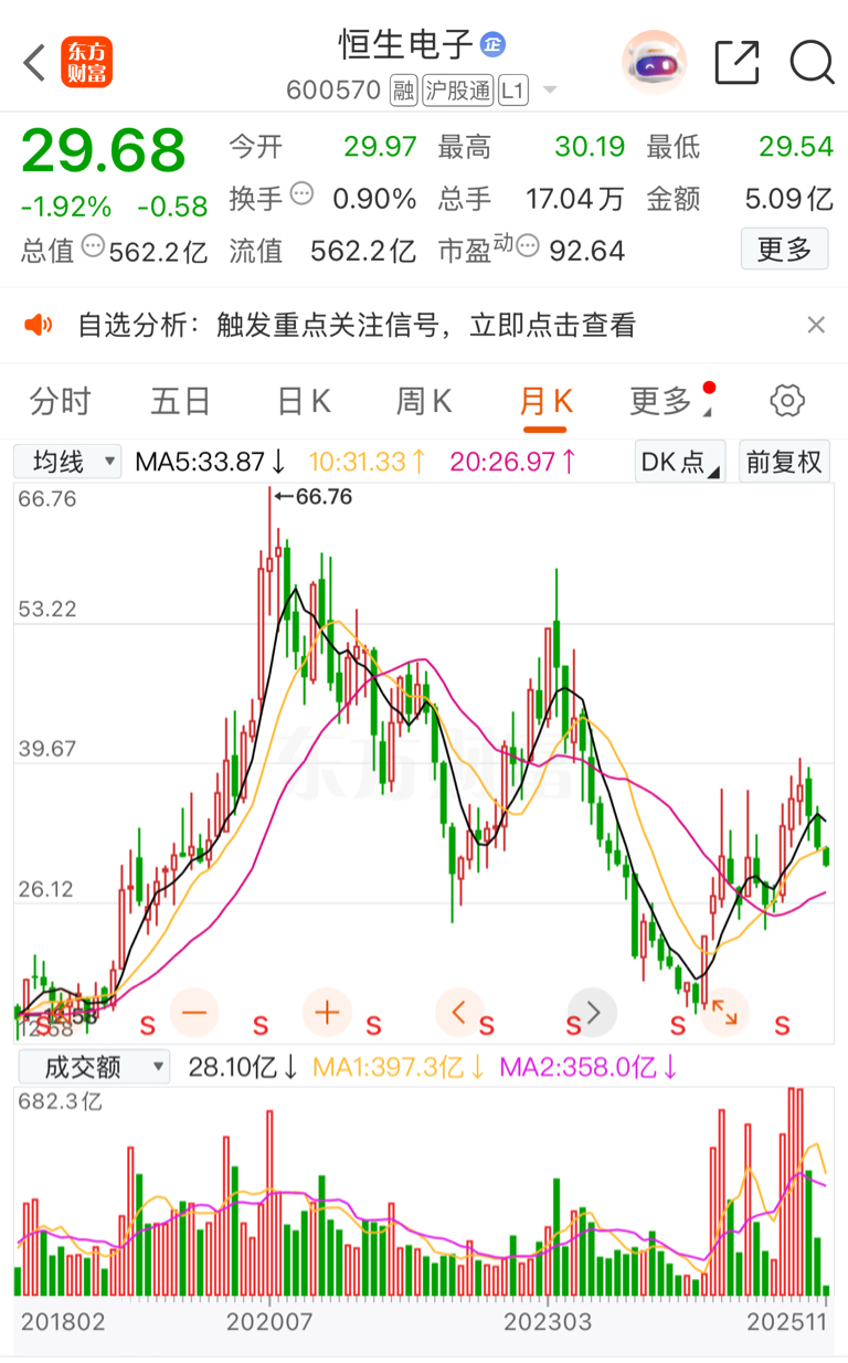 $恒生电子(SH600570)$ 仔细看看月K,底在哪里?