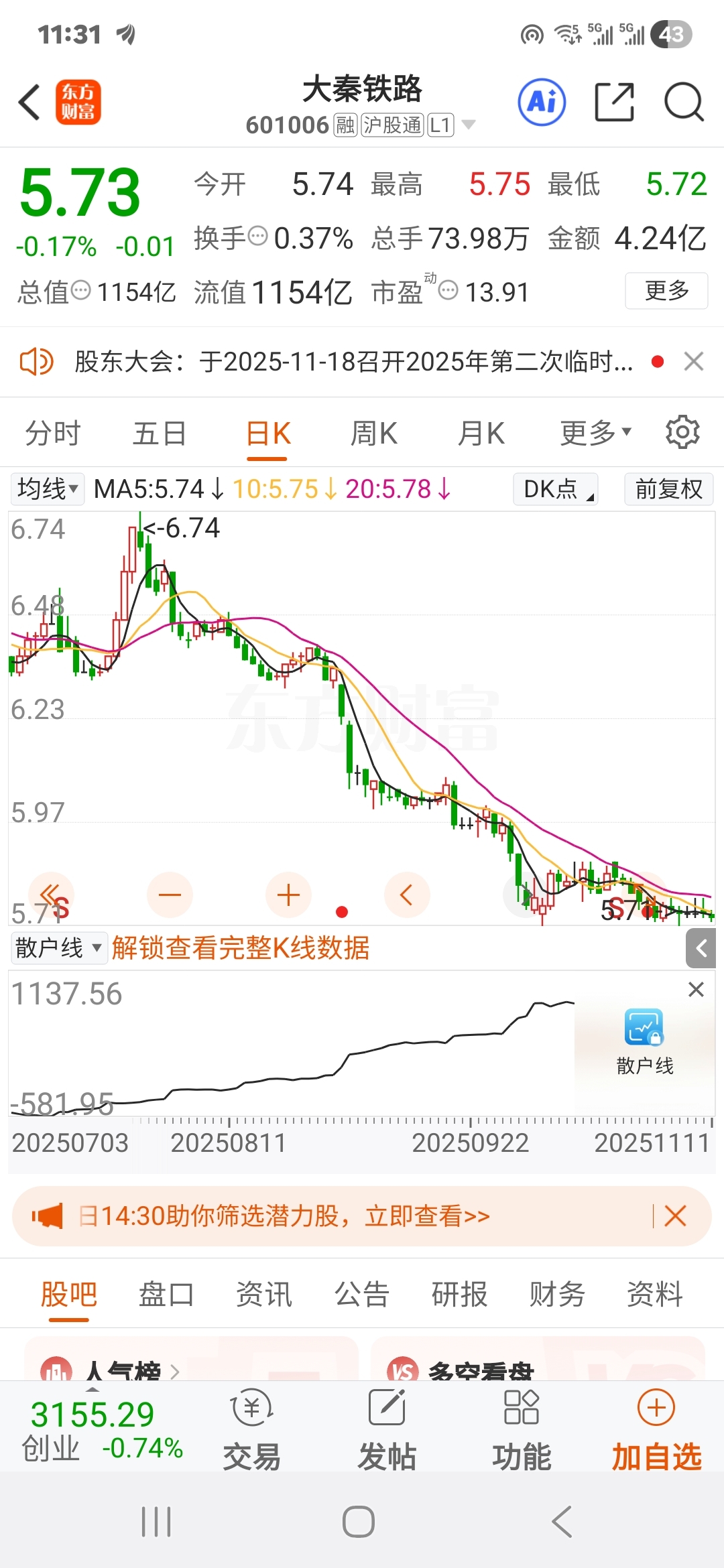 $恒生电子(SH600570)$ 恒生电子复制大秦铁路来了。哈哈