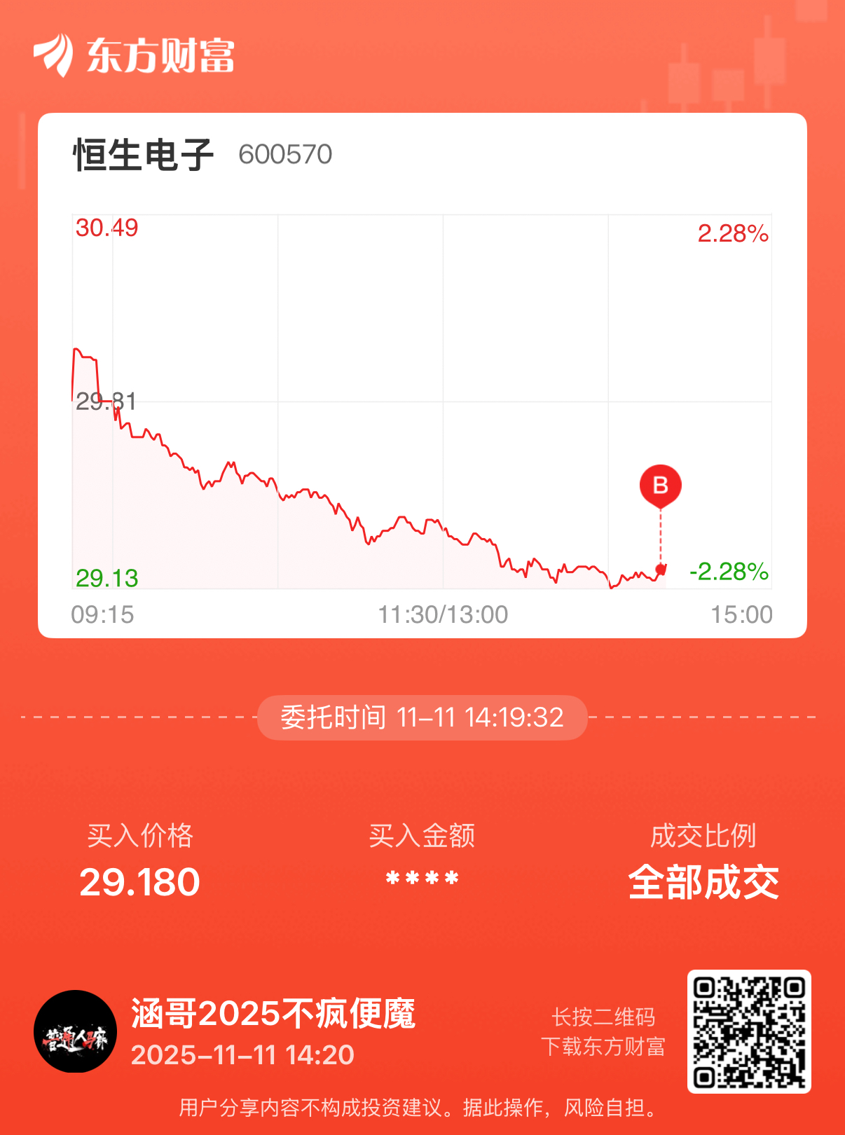 温馨提示: 1.根据《证券法》规定,禁止编造、传播虚假信息或者误导性信息,扰乱证券市场;2.用户在本社区发表的所有资料、言论等仅代表个人观点,与本网站立场无关,不对您构成任何投资建议。用户应基于自己的独立判断,自行决定证券投资并承担相应风险。《东方财富社区管理规定》