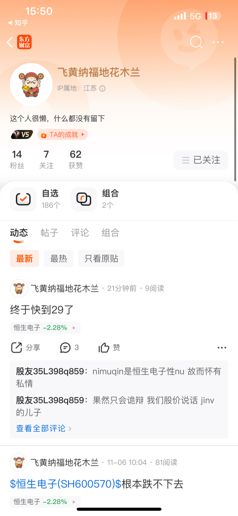 $恒生电子(SH600570)$ 花木兰nimuqin是恒生电子性nu 故而怀有私情