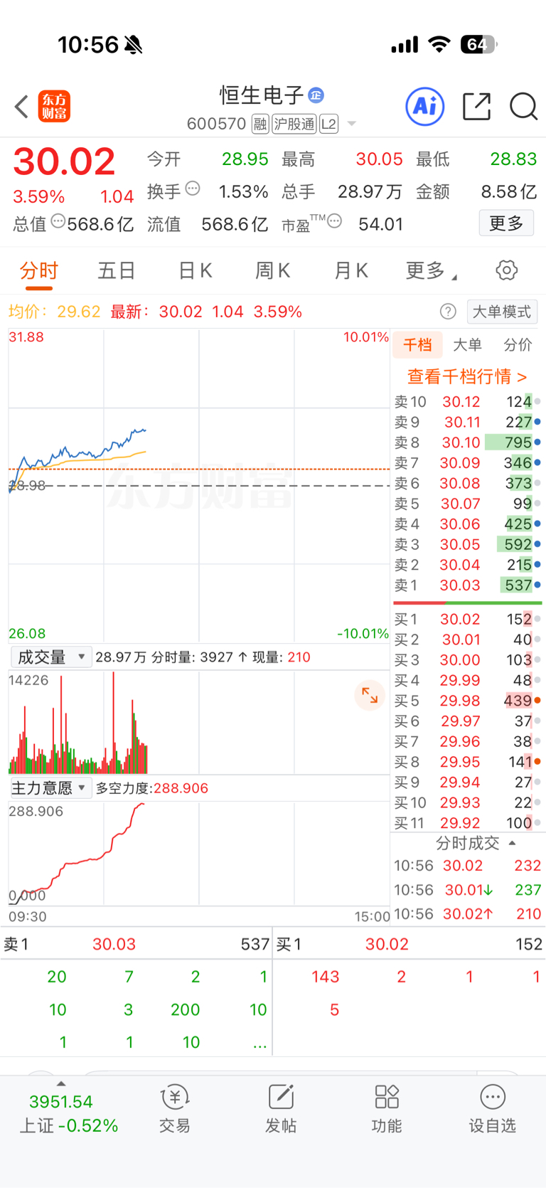 $恒生电子(SH600570)$ 最近一路补仓到成本线 你终于涨了
