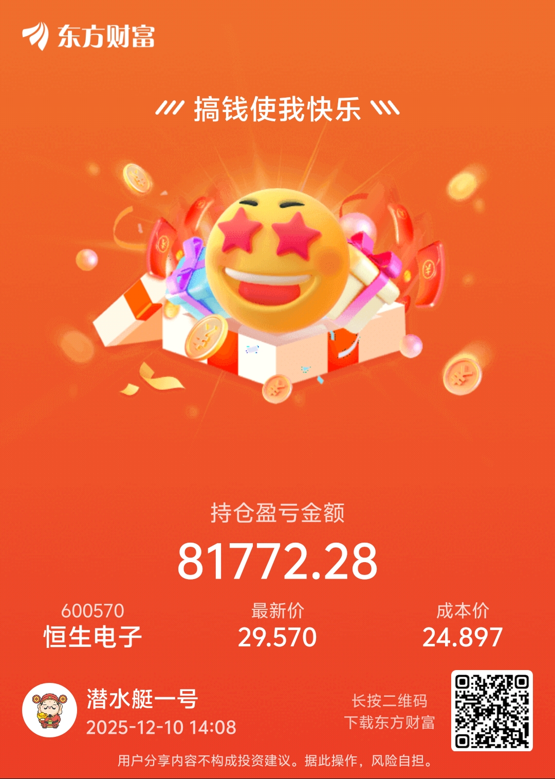 $恒生电子(SH600570)$ 完成建仓,锁仓待涨,这个位置形态的恒子,买入了的就踏踏实实的等过年了各位,还在看空的就开空单晒盈亏,天叫有啥意思
