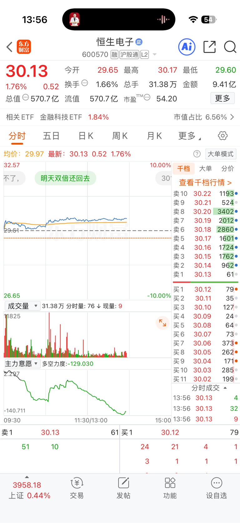 $恒生电子(SH600570)$ 两万手就突破30.20了 干不干
