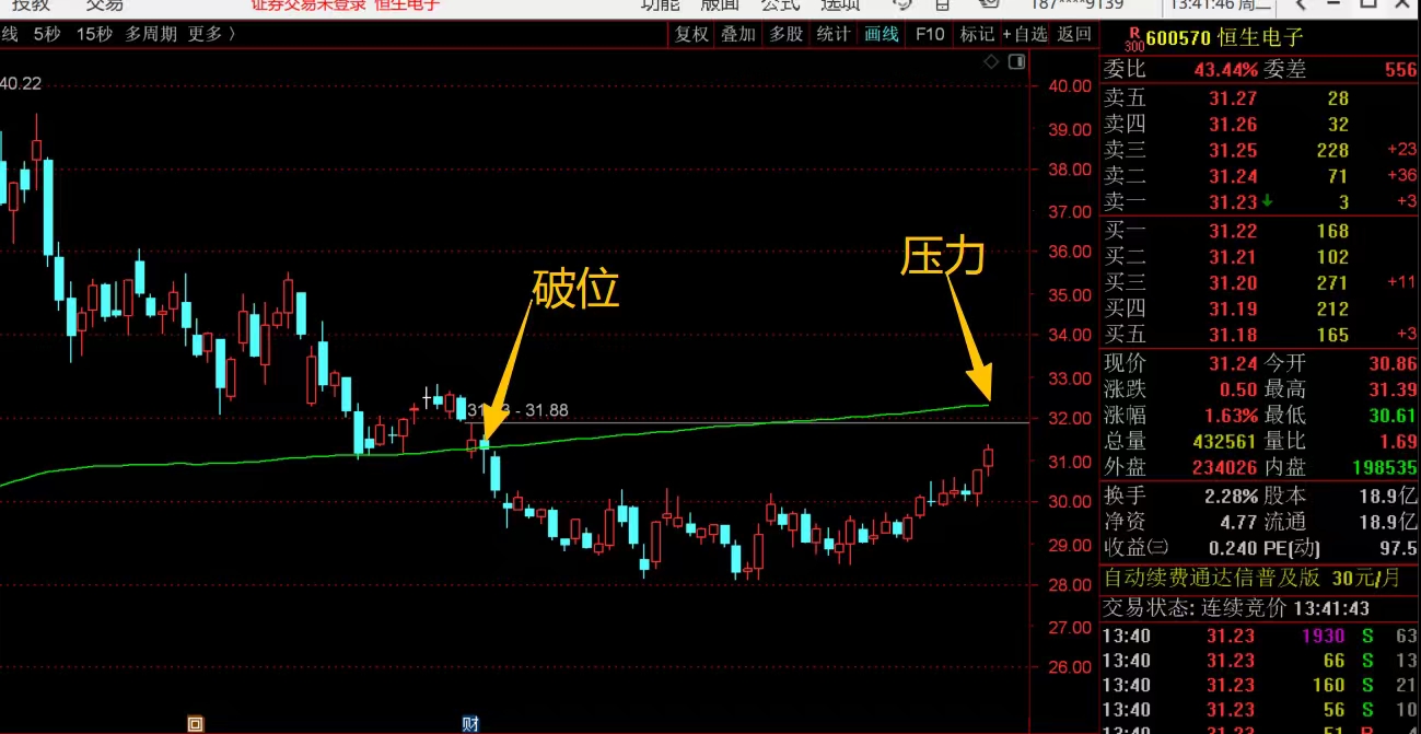 $恒生电子(SH600570)$ 前面中期趋势走弱了,高位回落下来,跌破了大均线31.29位置的支撑,但经过这段时间的震荡盘整后,走出了一个小圆弧底的反弹走势,这里拉升起来再次接近了头上大均线32.34位置,接下来重点就看这里能否继续拉升起来站稳,能就没问题了,但站不稳或者碰不到,就要注意短线的再次回落风险,需要控制仓位应对。#复盘记录# #炒股日记#