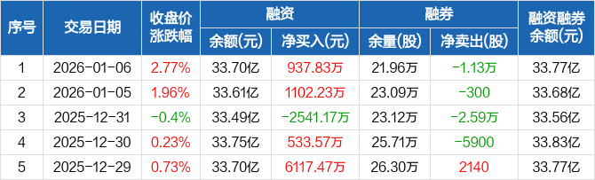 恒生电子:融资净买入937.83万元,融资余额33.7亿元(01-06)