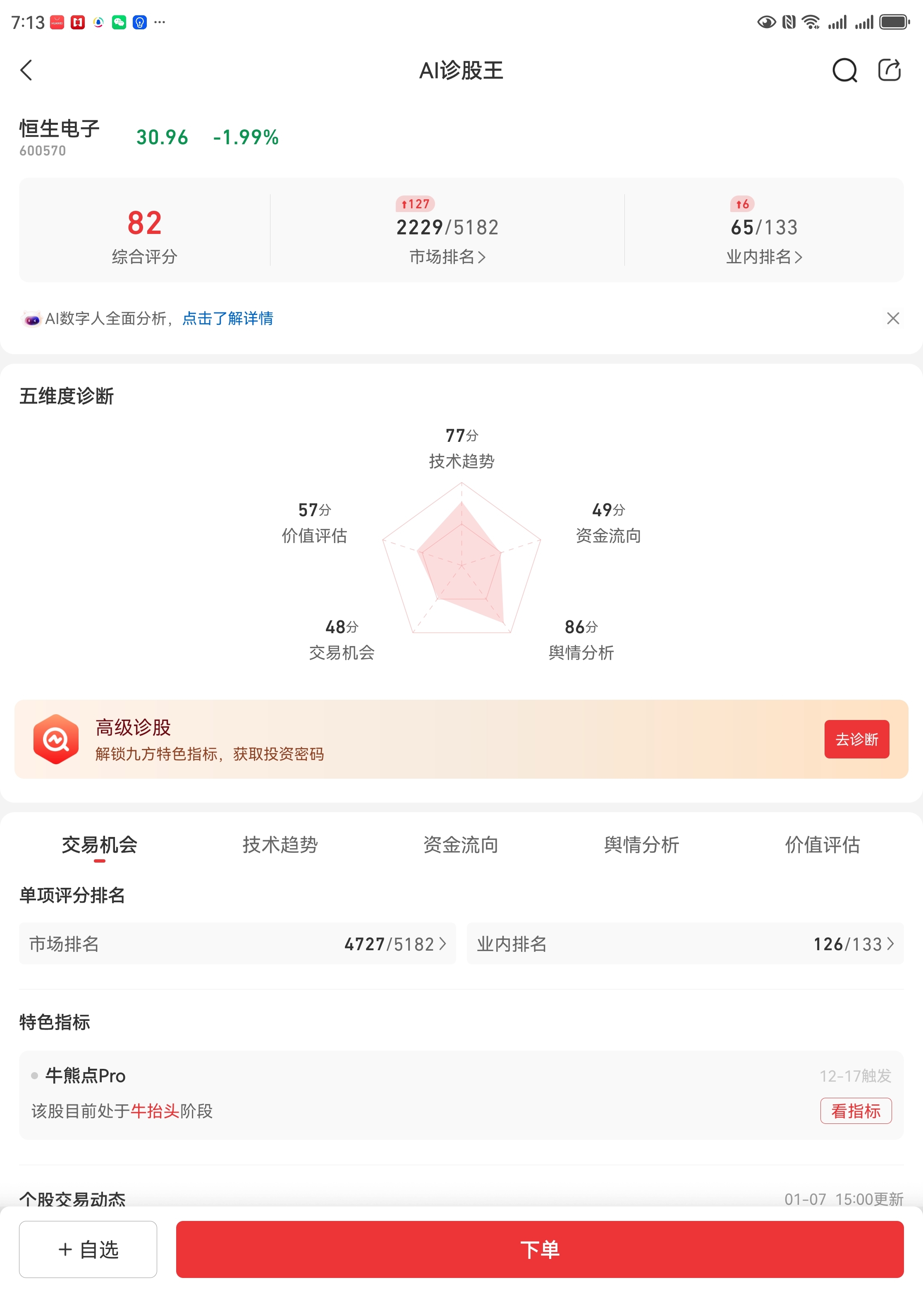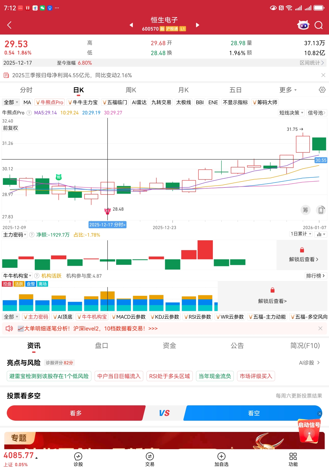 12.18号出现牛台头,评分82分.价格也在底部,有足够的成长空间。