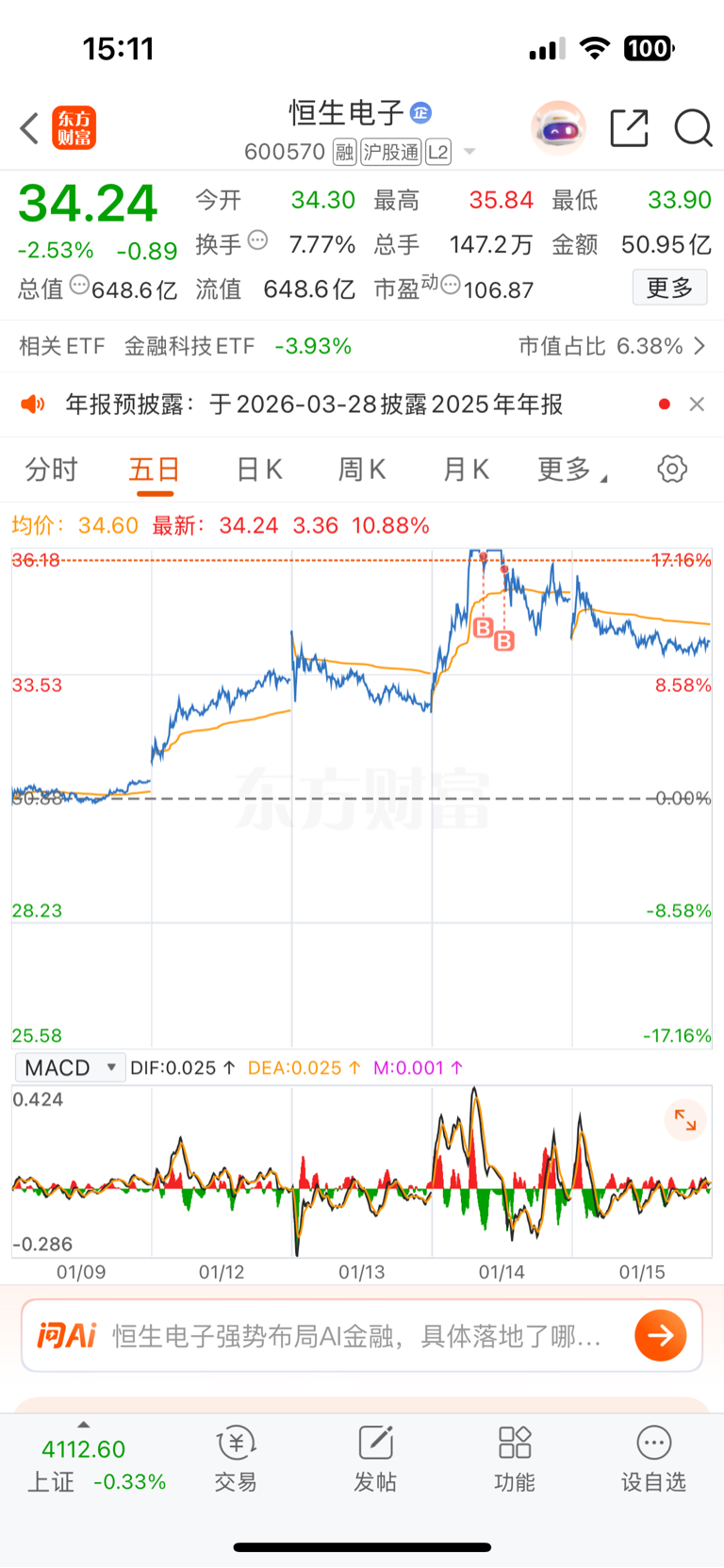 $恒生电子(SH600570)$ 高位站岗 山顶真冷