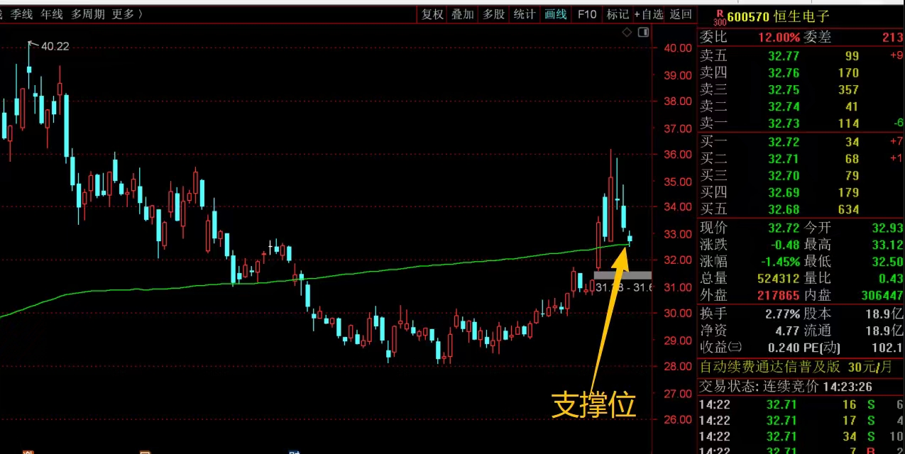 $恒生电子(SH600570)$ 近期反弹格局还不错,连续拉升后,这几天主要是一个回落调整,短线接下来重点盯着脚底大均线32.62位置的得失,能稳住就还能看反抽震荡,但如果有效跌破就要注意继续的回落风险了,需要控制仓位应对,不用纠结。#复盘记录# #炒股日记#