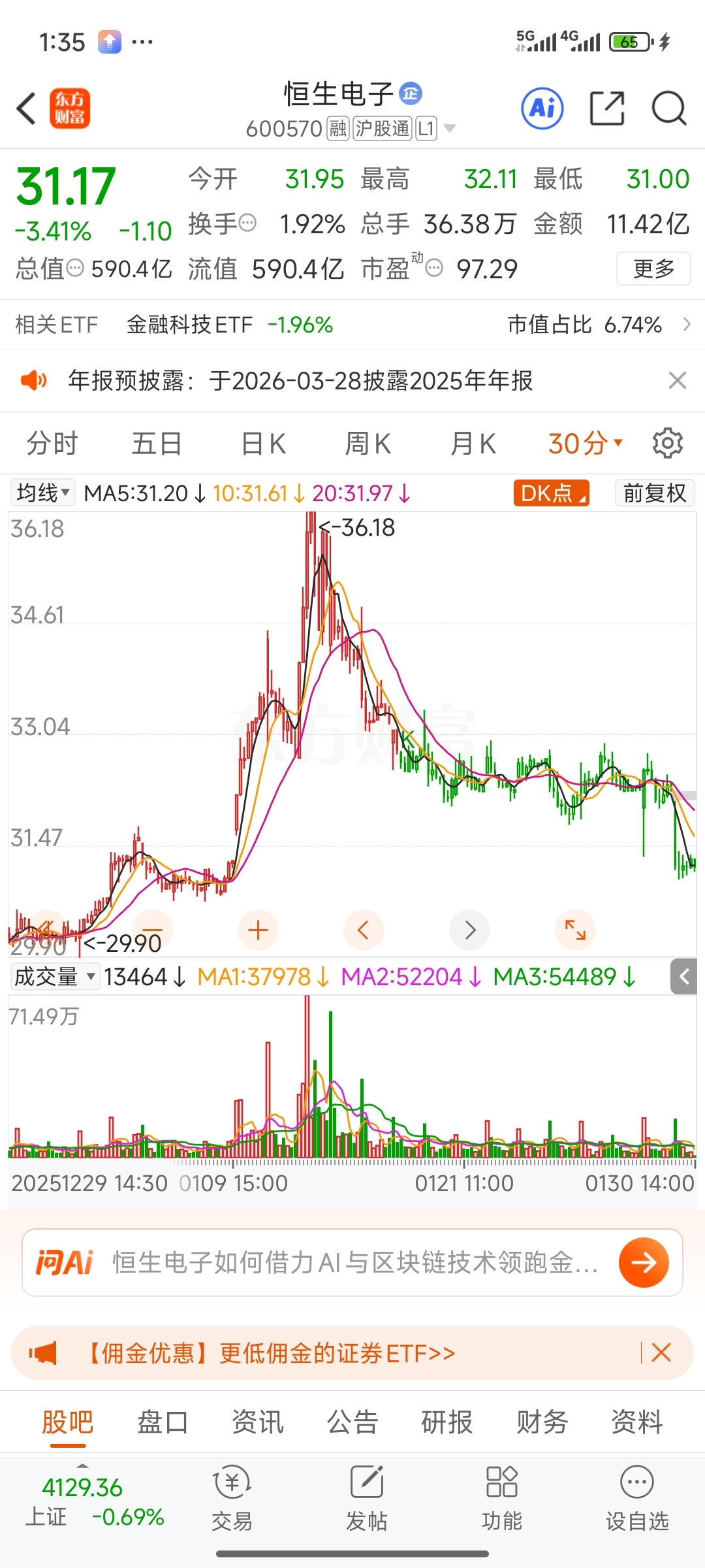 $恒生电子(SH600570)$ 请各位看一下30分钟线