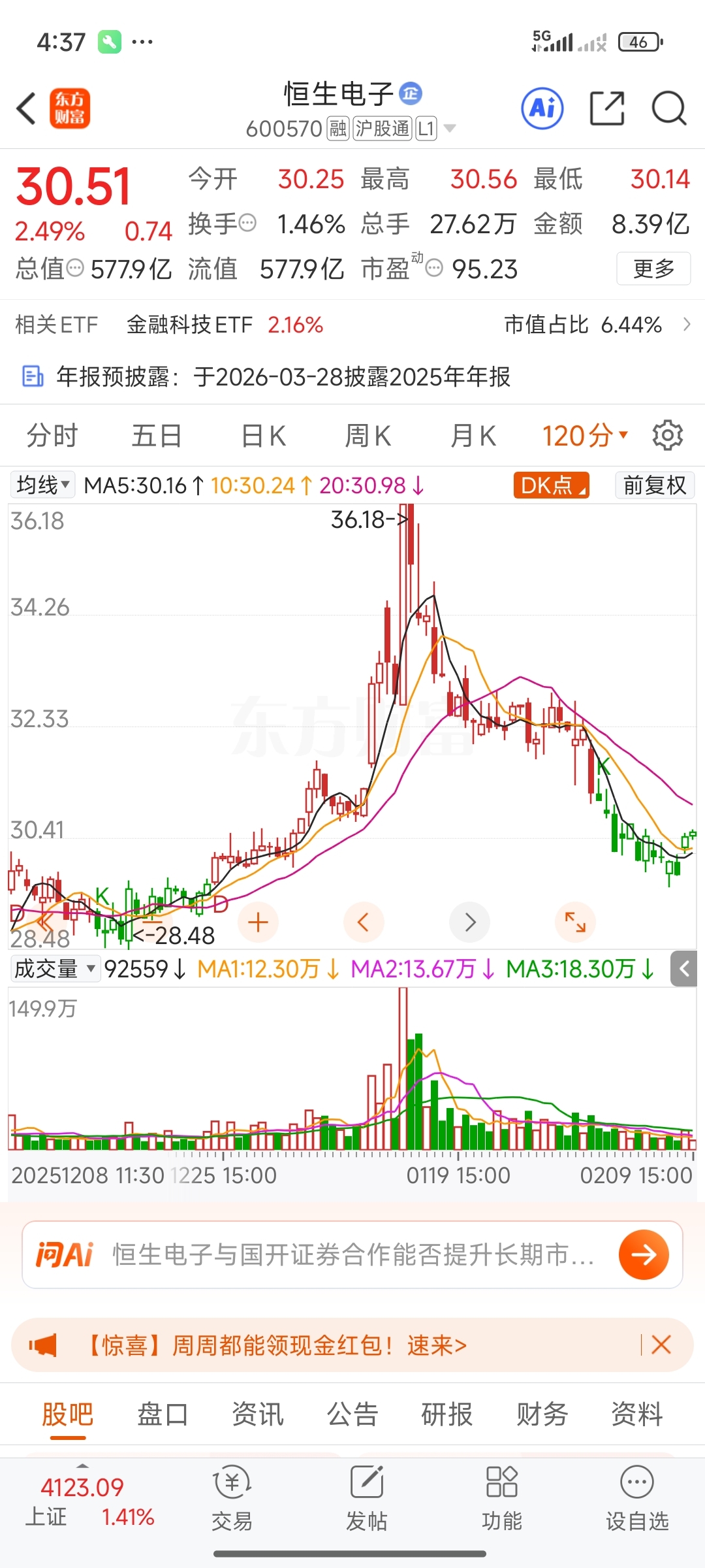 $恒生电子(SH600570)$ 无量,继续等吧,兄弟们