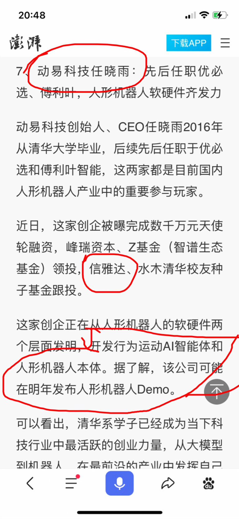 $信雅达(SH600571)$ 信雅达投资的人形机器人动易科技,去年9.16新闻说明年发布就是今年发布人形机器人Demo!