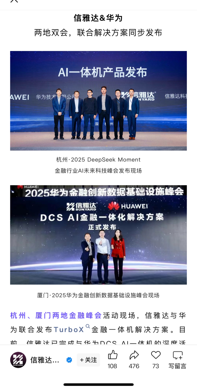 $信雅达(SH600571)$ 和华为合作机构大买