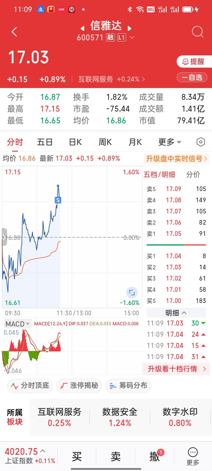 $信雅达(SH600571)$ 冲高就要卖,12卖了一成