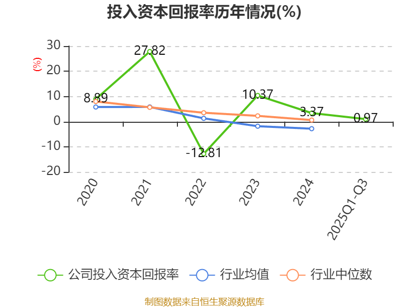 盈利能力方面, 2025年前三季度公司加权平均净资产收益率为1.86%,同比上升2.35个百分点。公司2025年前三季度投入资本回报率为0.97%,较上年同期上升3.56个百分点。