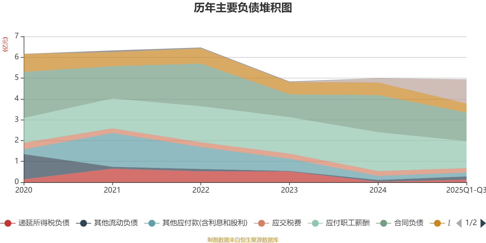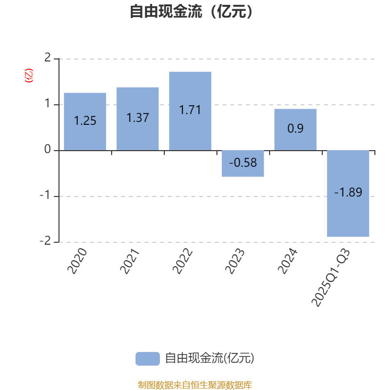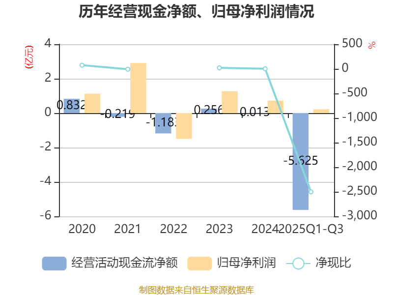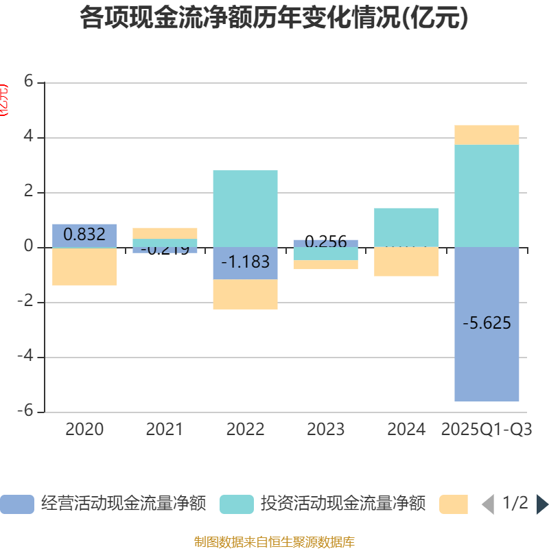 2025年前三季度,公司经营活动现金流净额为-5.63亿元,同比减少1.26亿元;筹资活动现金流净额7049.44万元,同比增加1.43亿元;投资活动现金流净额3.73亿元,上年同期为4.71亿元。