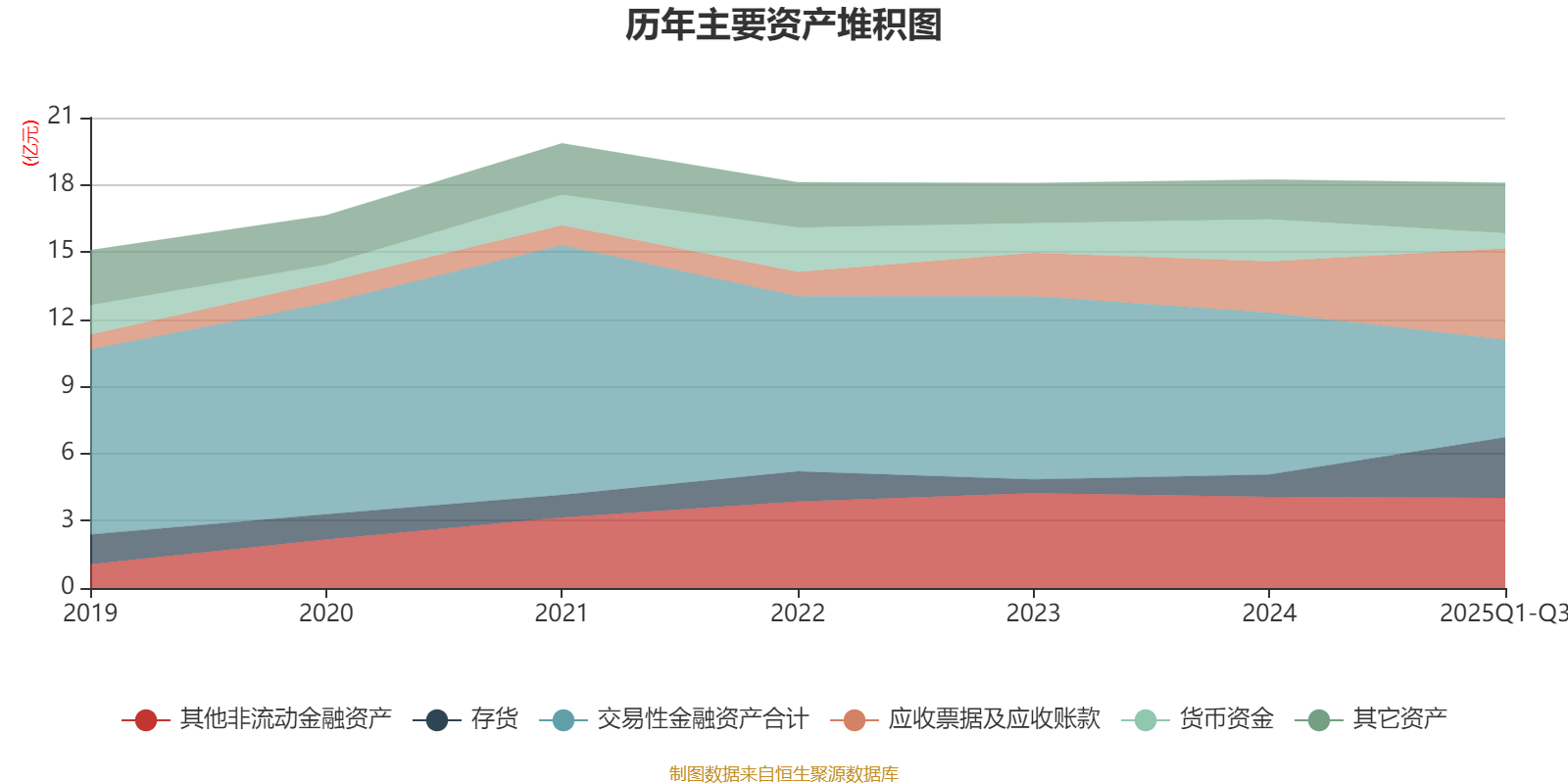 资产重大变化方面,截至2025年三季度末,公司交易性金融资产合计较上年末减少39.7%,占公司总资产比重下降15.56个百分点;应收票据及应收账款较上年末增加78.04%,占公司总资产比重上升9.96个百分点;存货较上年末增加170.37%,占公司总资产比重上升9.46个百分点;货币资金较上年末减少63.57%,占公司总资产比重下降6.52个百分点。