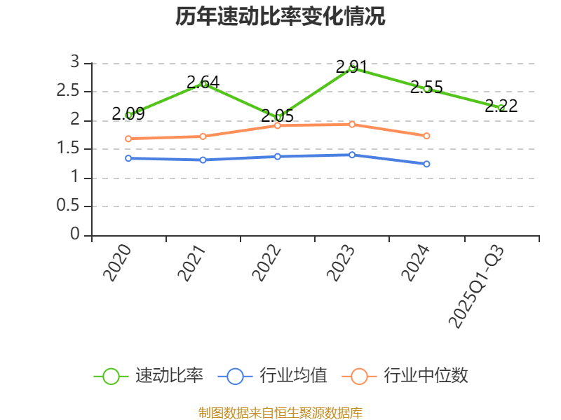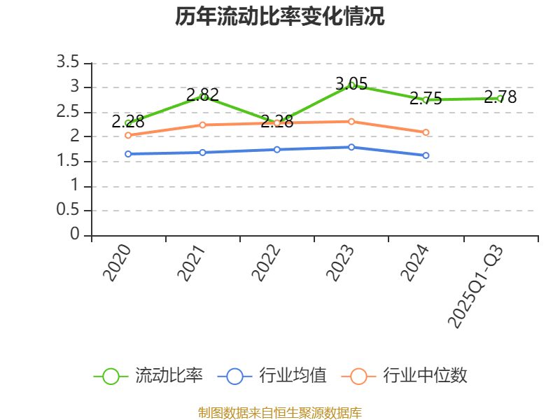 2025年前三季度,公司流动比率为2.78,速动比率为2.22。