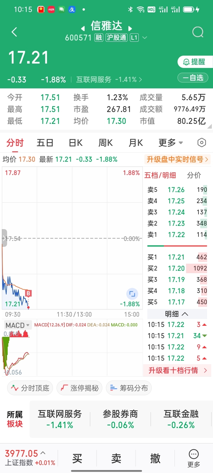 $信雅达(SH600571)$ 昨天17-58卖的,今天17-21买回来,感谢主力,每跌2个点加一次仓