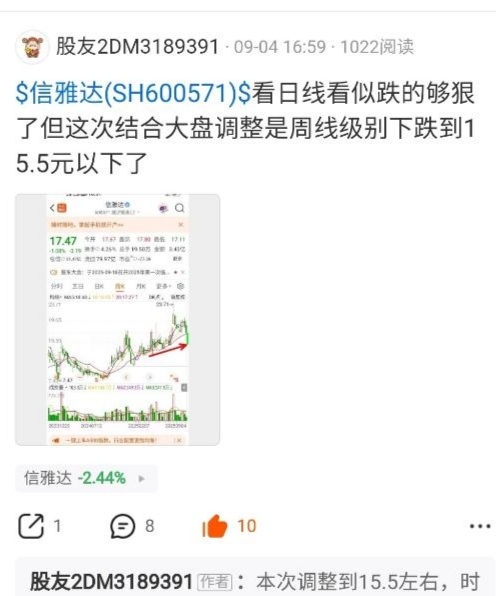$信雅达(SH600571)$ 九月初就给你们说了要调整到15.5左右,有几个人信了,至于近期的走势,最近会有一根放量大阴线暴跌破16元,在此之前的任何小阴或小阳反弹均为下跌中继,依然没几个人相信,最后依然会被验证