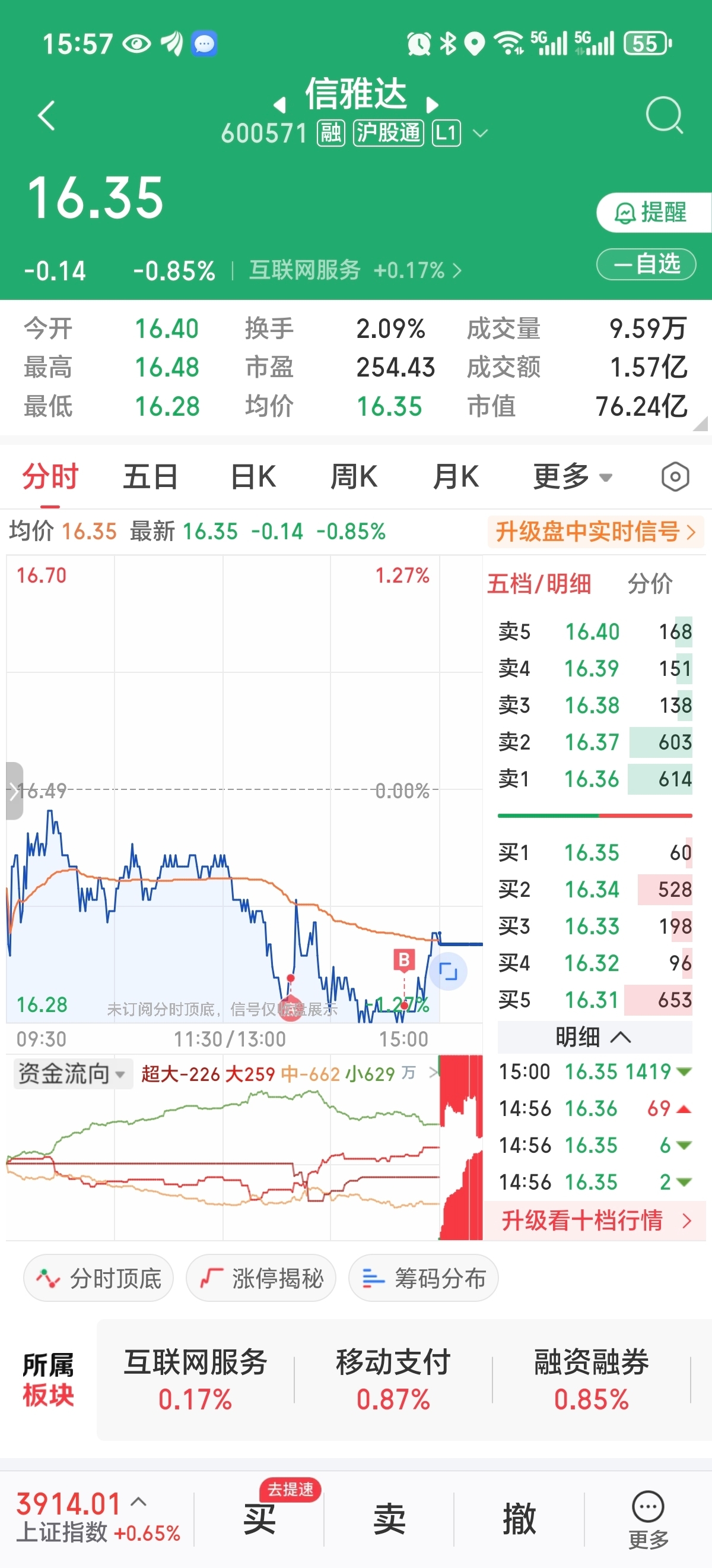 $信雅达(SH600571)$ 等不到破16了,尾盘指数企稳就先买上一份,阿达会不会来个主升一段?