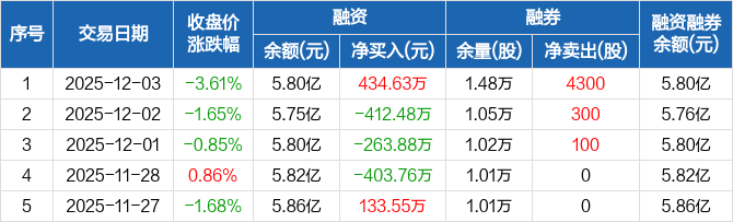 信雅达:融资净买入434.63万元,融资余额5.8亿元(12-03)