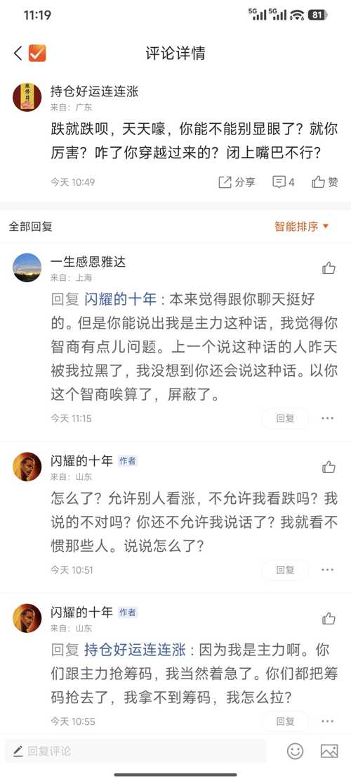 唉,怎么说呢?一个几十亿的小票。跑出来这么多主力,笑死我了。前两天我还拉黑了一个