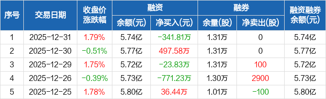 信雅达:融资净偿还341.81万元,融资余额5.74亿元(12-31)