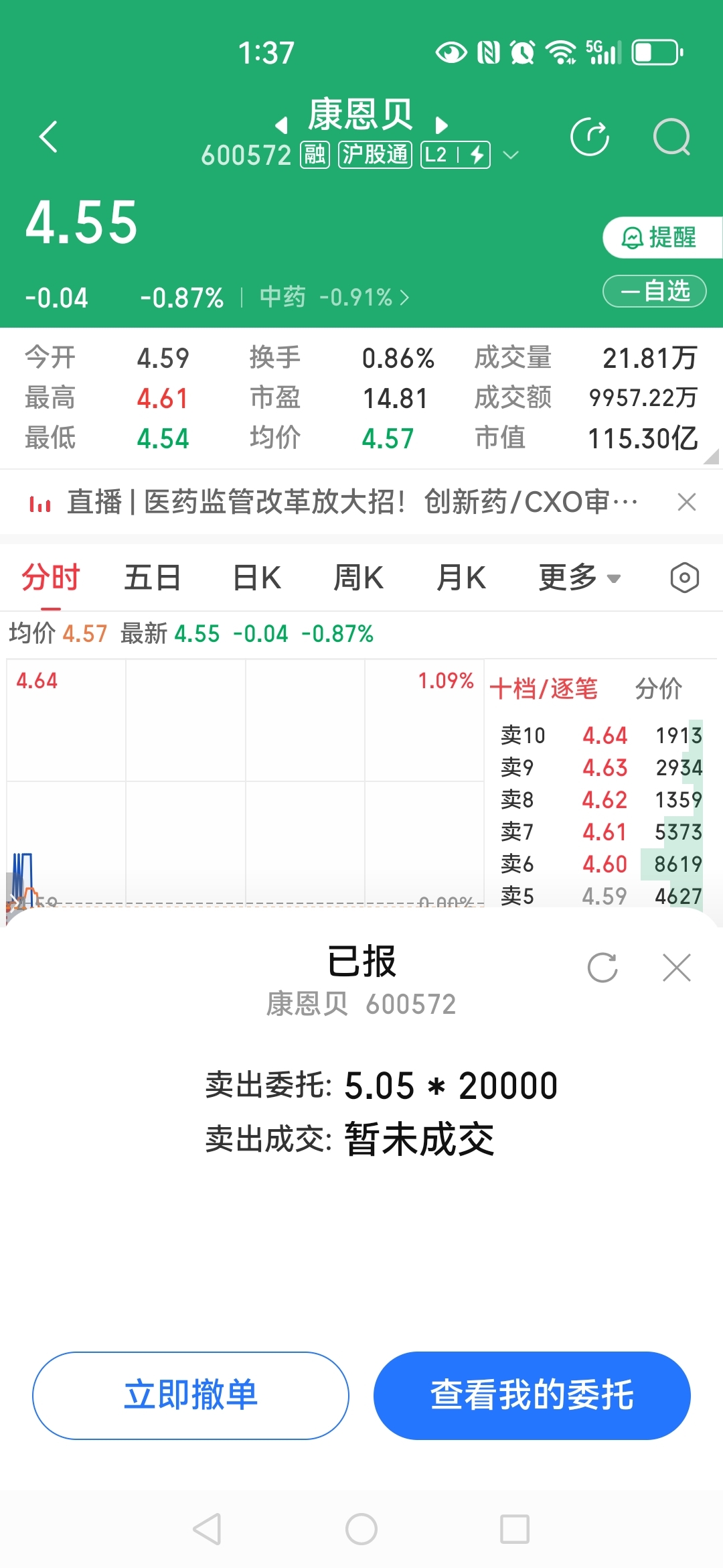 $康恩贝(SH600572)$ 涨停板挂单卖出2点后能不能成交