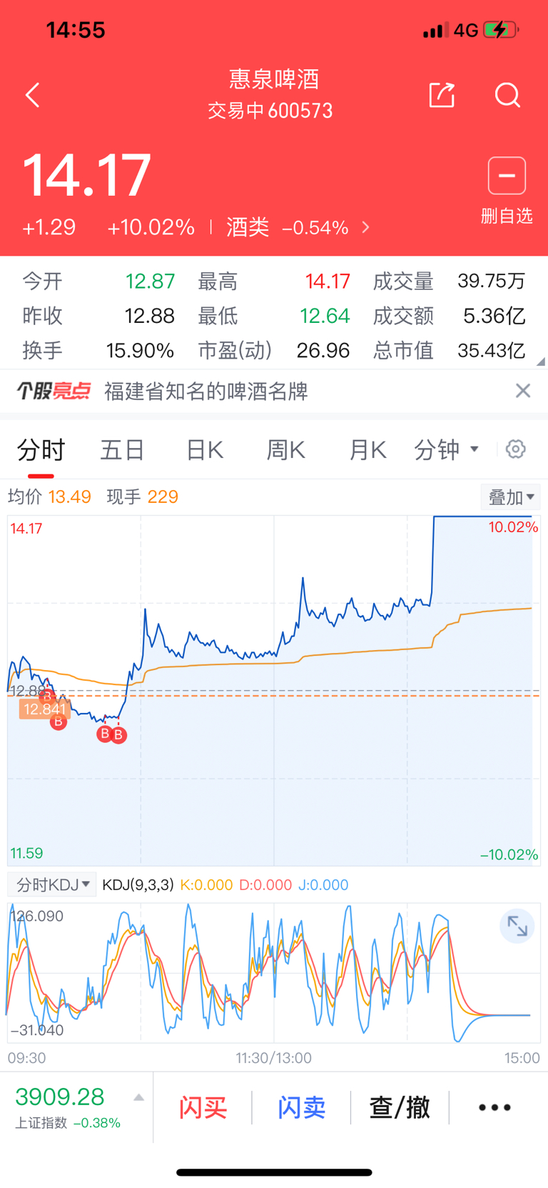 $惠泉啤酒(SH600573)$ 今天晚上买啤酒庆祝