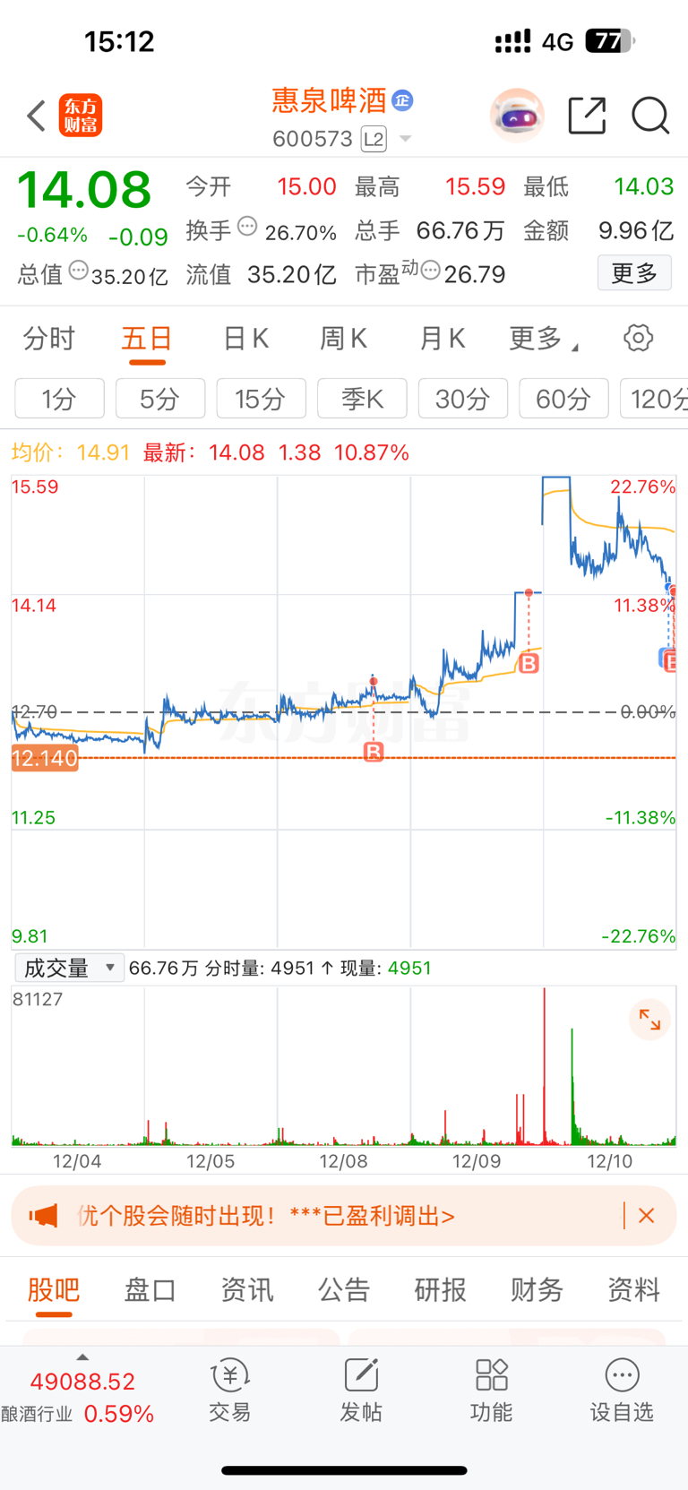 $惠泉啤酒(SH600573)$ 就是遇到太多这种烂票整怕了,下次遇到7连板的估计2板就丢了
