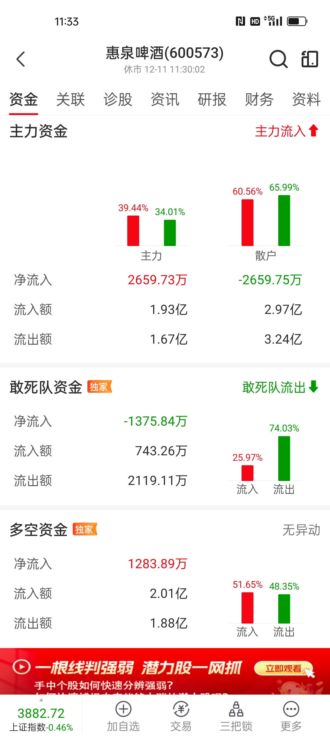 $惠泉啤酒(SH600573)$ 资金是流入的,说明主力在抄底散户带血的筹码。主要看下午情绪,情绪不好地板,明天也是绿的。