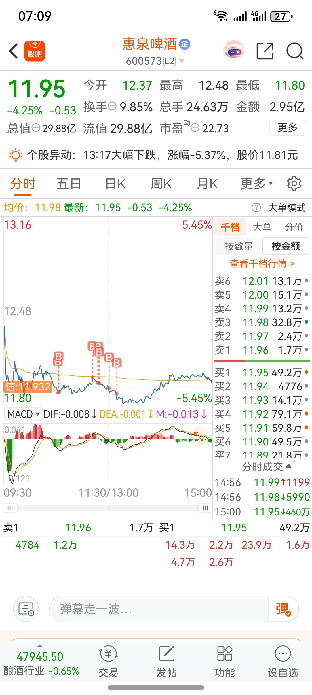 $惠泉啤酒(SH600573)$ 分批买了那么多次,还是没有买在最低点