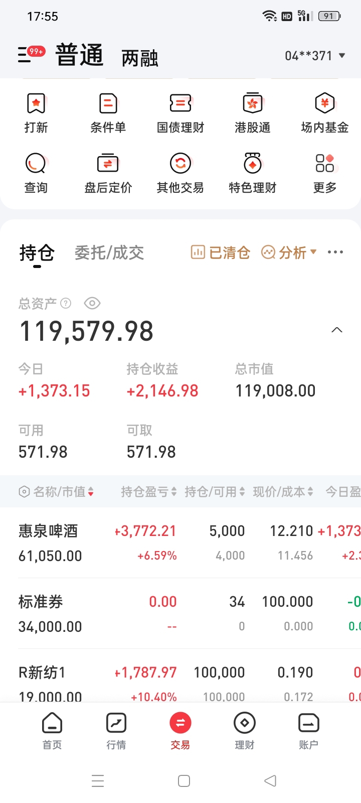 $惠泉啤酒(SH600573)$ 操作赢了73元