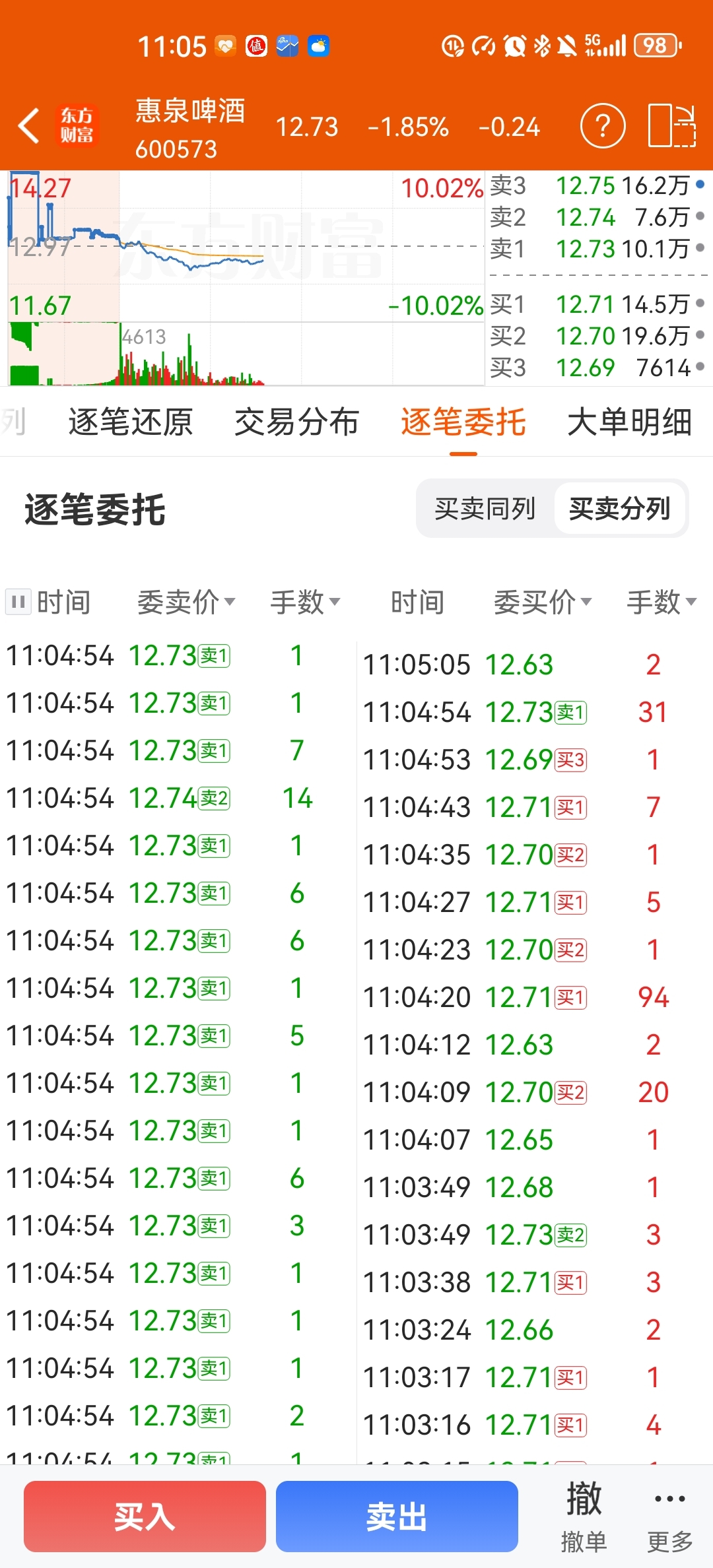 $惠泉啤酒(SH600573)$ 1秒这么多卖单,怎么可能是散户行为。就是量化砸盘