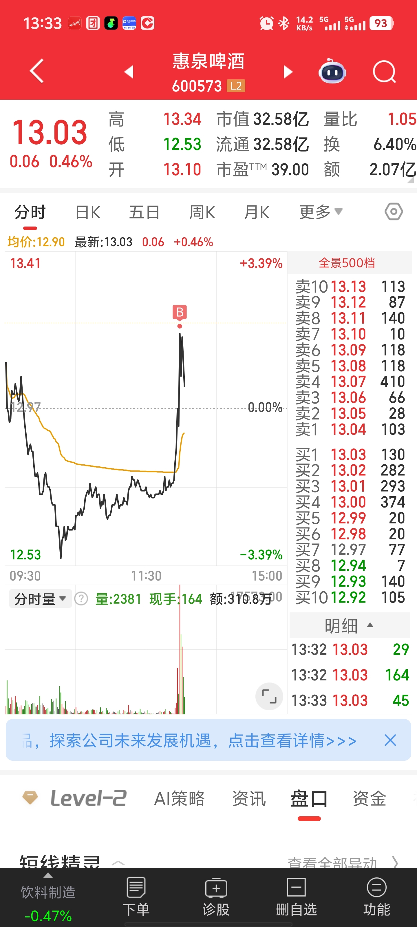 $惠泉啤酒(SH600573)$ 不是吧,哥们,一买就套山顶了