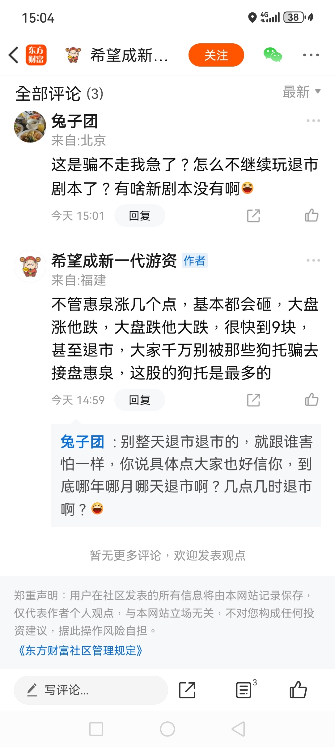 $惠泉啤酒(SH600573)$ @乘风破浪十倍可期 @股友3L202066g6 @希望成新一代游资 苟懒子到底哪年哪月哪天几时几分退市啊?你说具体点我们也好信你