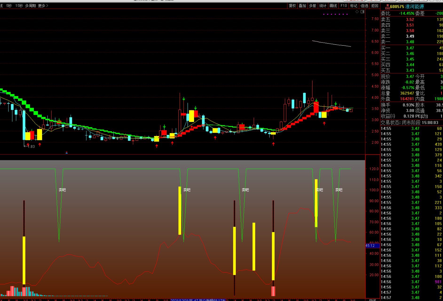 月线主图和副图都是卖出信号,说明是下跌中继,每次都是1元几月线才发买入信号大盘明