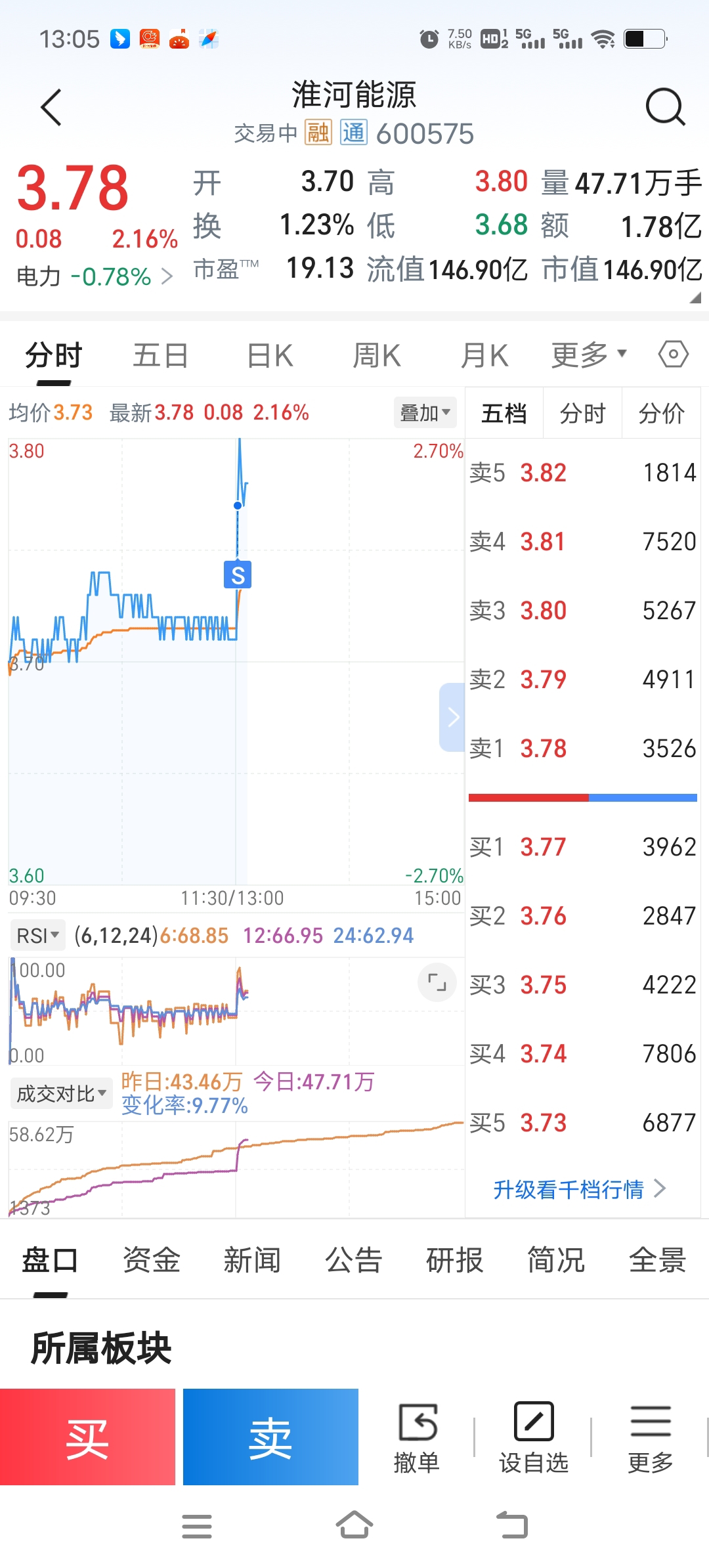 $淮河能源(SH600575)$ 啥情况,3.74既然卖了,一下子拉这么多