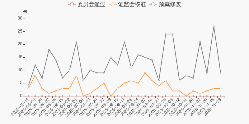 定增项目审核方面,截止11月23日,本周新增0例定增项目获发审委或并购重组委审核通过,3例获证监核准批文,整体审核速度基本持平。此外,本周9例定增项目预案发生调整。
