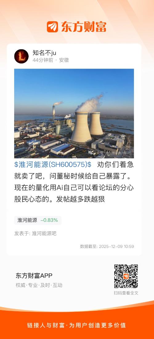 $淮河能源(SH600575)$ 劝你们着急就卖了吧,问董秘时候给自己暴露了。现在的量化用Ai自己可以看论坛的分心股民心态的。发帖越多跌越狠