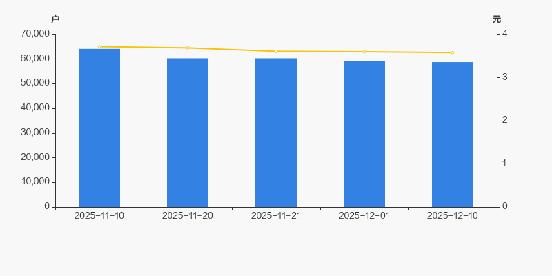 截至2025年12月10日,公司最新总股本为38.86亿股,且均为流通股。户均持有流通股数量由上期的6.55万股上升至6.61万股,户均流通市值23.67万元。