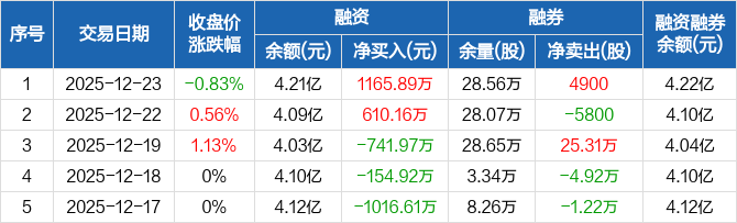 淮河能源:融资净买入1165.89万元,融资余额4.21亿元(12-23)