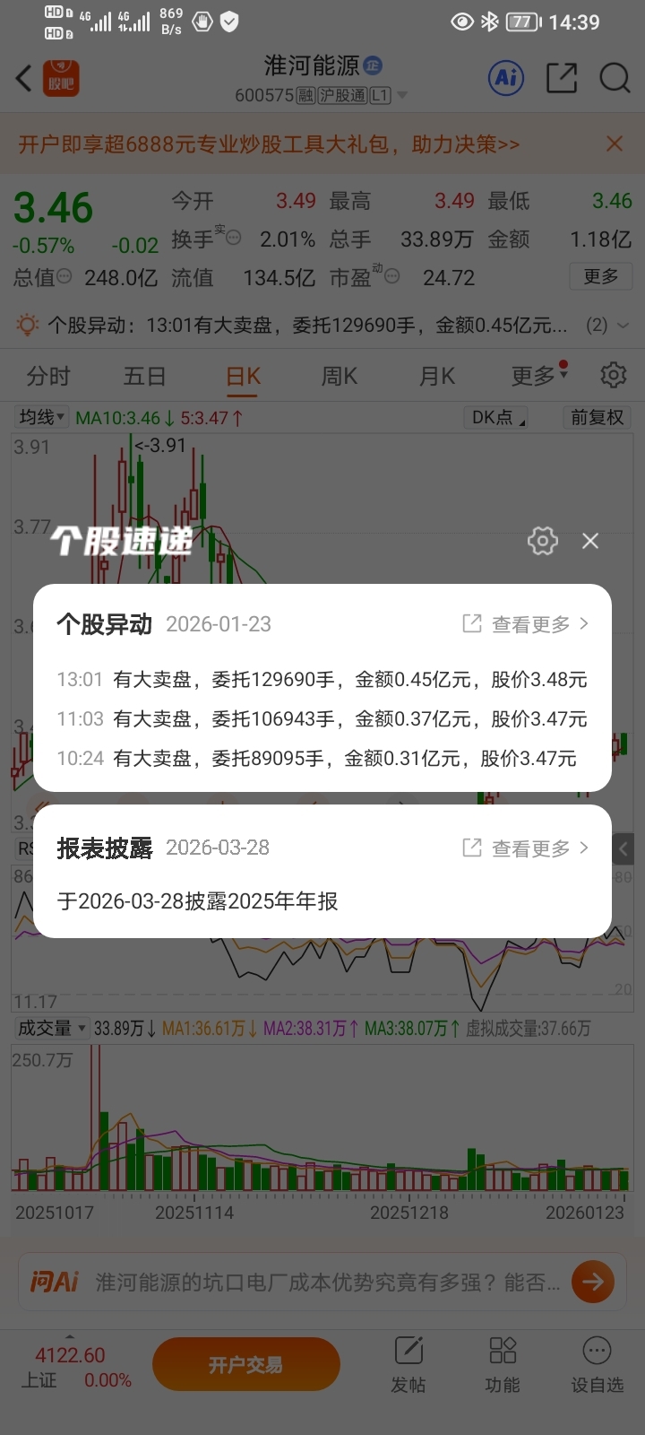 $淮河能源(SH600575)$
