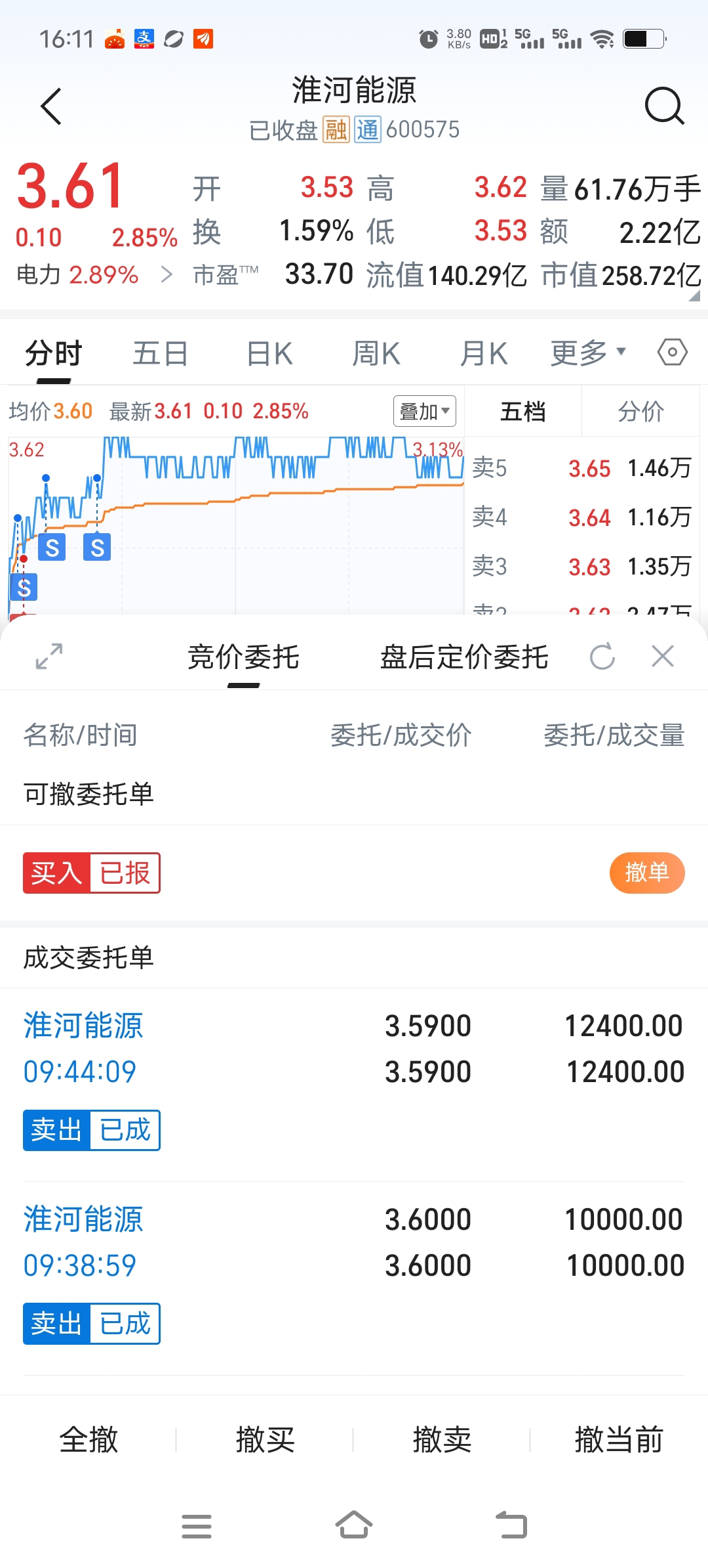 $淮河能源(SH600575)$ 3.59跟3.60卖了,3.58想接回来没接回来,明天还有机会接回来吗