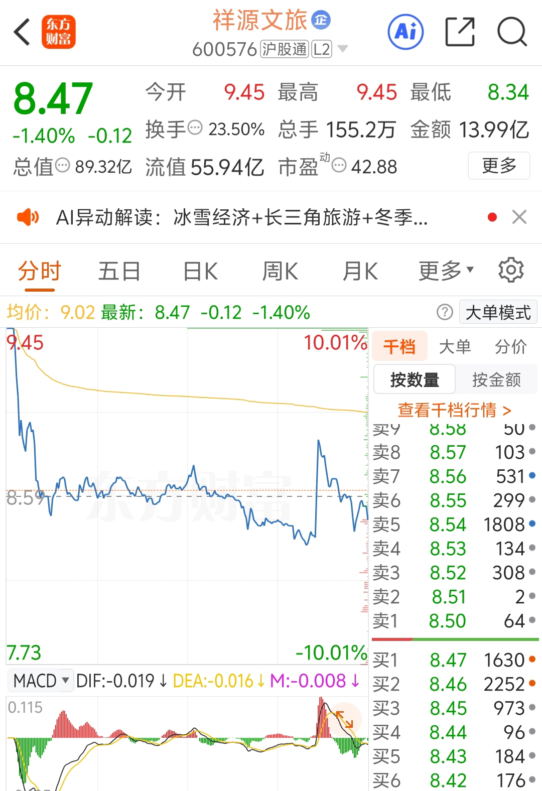 $祥源文旅(SH600576)$ 神金冰吧大A,昨天指数4030,今天3990。祥源那么好看的图形,走成这样,几个亿挂涨停挂在山顶,-1.4收盘,振幅12.92%